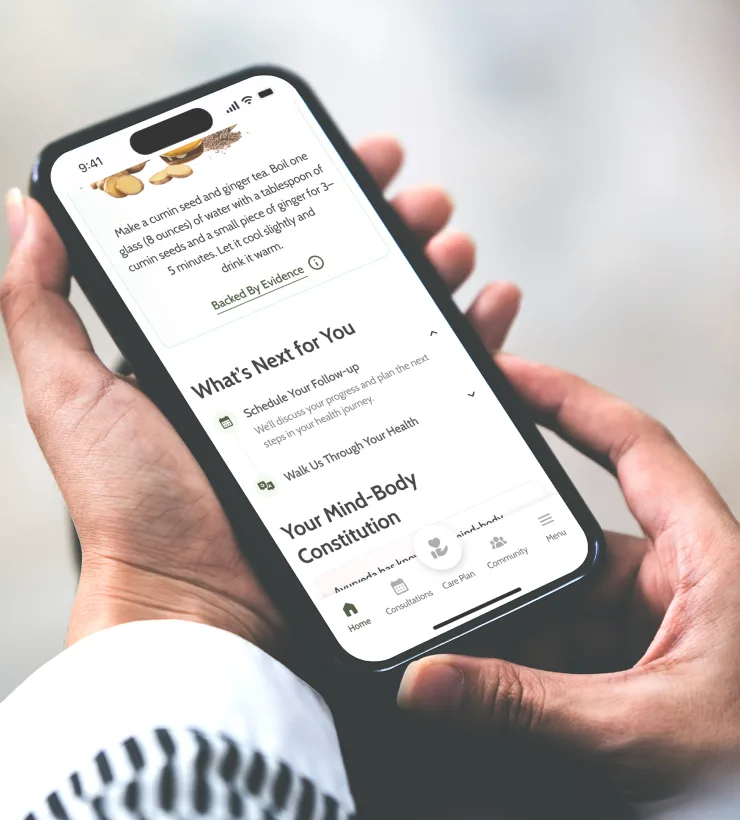 Our integrated team includes board-certified MDs, pharmacologists, licensed Ayurvedic physicians, certified yoga therapists, and holistic wellness experts – all working together to support your health, every step of the way.